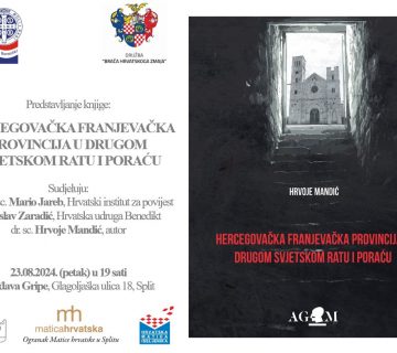 Predstavljanje knjige: Hercegovačka franjevačka provincija u Drugom svjetskom ratu i poraću autora dr. sc. Hrvoja Mandića