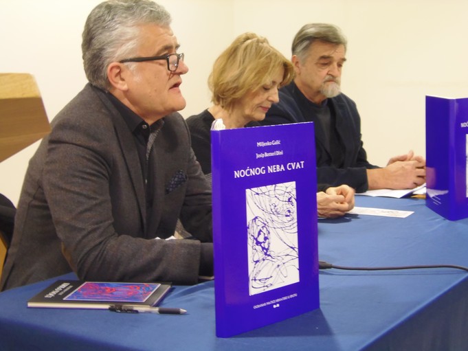 U izložbenoj dvorani Dominikanskog samostana u Splitu „o. Vinka Draganje“ 16 veljače predstavljena je u organizaciji Ogranka Matice hrvatske u Splitu nova pjesničko-grafička mapa pjesnika Miljenka Galića i akademskog slikara Josipa Botterija Dinija, naziva Noćnog neba cvat.